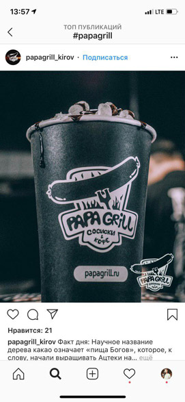 «Papa Grill» это одна из крупнейший сети уличной еды. Основное меню это хот-доги и бургеры.